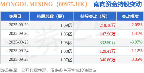 证券之星消息,9月29日南向资金增持218.1万股MONGOL MINING(00975.HK)。近5个交易日中,获南向资金增持的有4天,累计净增持500.7万股。近20个交易日中,获南向资金增持的有13天,累计净增持1117.8万股。截至目前,南向资金持有MONGOL MINING(00975.HK)1.09亿股,占公司已发行普通股的nan%。