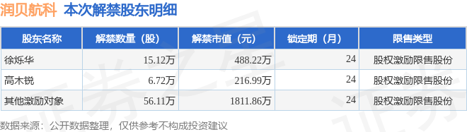 证券之星消息,根据市场公开信息整理,润贝航科(001316)于9月30日将有77.95万股限售股份解禁,为公司股权激励限售股份,占公司总股本0.68%。(本次数据根据历史公告整理得出,实际情况以上市公司最新公告为准)最近一年内,该股累计解禁5280.68万股,占总股本的45.87%。本次解禁后,公司还有359.52万股限售股份,占总股本3.12%。具体如下图所示: