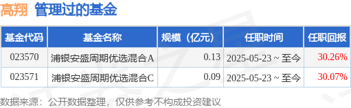 高翔先生:中国国籍,华中科技大学金融学博士。2018年10月至2020年8月就职于国金证券股份有限公司,在研究所担任宏观经济研究员。2020年8月加盟浦银安盛基金管理有限公司,任研究部宏观策略周期研究员,现任权益投资部基金经理之职。2025年5月23日担任浦银安盛周期优选混合型发起式证券投资基金基金经理。