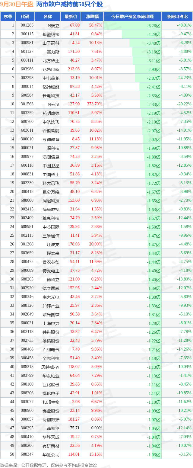两市散户减持最多的前十只个股为: