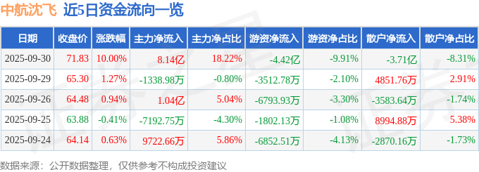 9月30日的资金流向数据方面,主力资金净流入8.14亿元,占总成交额18.22%,游资资金净流出4.42亿元,占总成交额9.91%,散户资金净流出3.71亿元,占总成交额8.31%。