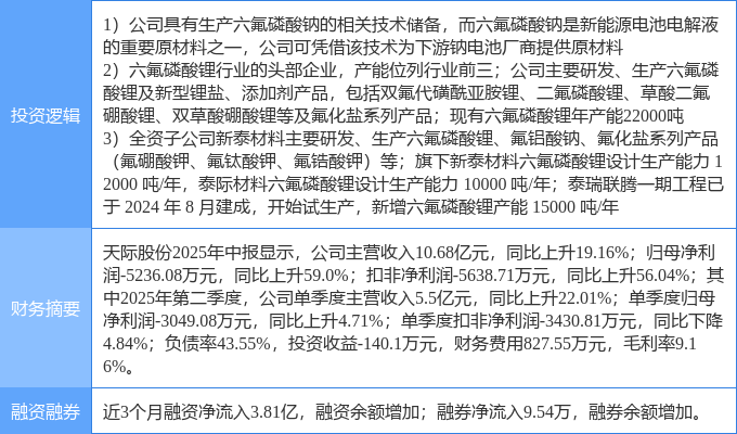 该股为锂电池,钠电池,氟化工概念热股,当日锂电池概念上涨2.09%,钠电池概念上涨2.0%,氟化工概念上涨1.75%。