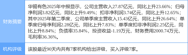2025年8月17日,开源证券研究员孙二春,温佳贝发布了对华锡有色的研报《公司信息更新报告:广西省核心有色上市平台,有望充分受益锡锑价格上涨》,该研报对华锡有色给出“买入”评级。研报中预计2025~2027年公司归母净利润分别为9.42/10.51/13.28亿元(此前预计2025~2026年分别为8.08、10.78亿元),对应EPS分别为1.49/1.66/2.10元,对应2025年8月15日收盘价PE分别为17.8/15.9/12.6倍,锡、锑价格持续高位,公司内增外延不断成长,维持“买入”评级。证券之星数据中心根据近三年发布的研报数据计算,该研报作者对此股的盈利预测准确度为70.24%。