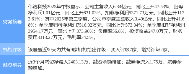 2025年8月21日,中邮证券研究员吴文吉,翟一梦发布了对伟测科技的研报《车规、算力驱动增长,持续扩充高端测试产能》,该研报对伟测科技给出“买入”评级。研报中预计公司2025-2027年分别实现营收15.62/20.03/25.04亿元,实现净利润2.51/3.55/4.99亿元,维持“买入”评级。证券之星数据中心根据近三年发布的研报数据计算,该研报作者对此股的盈利预测准确度为73.9%。