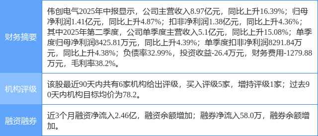 2025年8月26日,东吴证券研究员曾朵红,谢哲栋,许钧赫发布了对伟创电气的研报《2025年半年报点评:业绩符合市场预期,“内生+开放合作”布局机器人业务》,该研报对伟创电气给出“买入”评级。证券之星数据中心根据近三年发布的研报数据计算,该研报作者对此股的盈利预测准确度为87.52%。