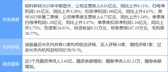 2025年8月29日,华源证券研究员田源,田庆争,张明磊,项祈瑞,陈婉妤发布了对铂科新材的研报《业绩环比改善明显,ASIC芯片电感需求有望放量》,该研报对铂科新材给出“买入”评级。研报中预计公司2025-2027年归母净利润分别为4.5/6.2/7.6亿元,同比增速分别为18.8%/38.5%/22.7%,当前股价对应的PE分别为51/37/30倍,公司站稳光储新能源高景气赛道,芯片电感打开第二成长极,维持“买入”评级。证券之星数据中心根据近三年发布的研报数据计算,该研报作者对此股的盈利预测准确度为96.45%。