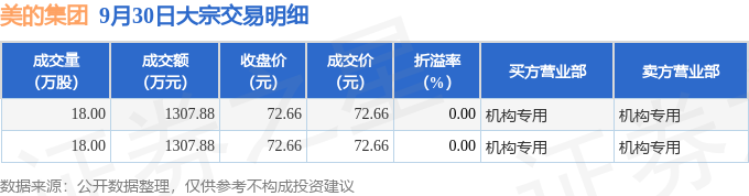 证券之星消息,9月30日美的集团发生大宗交易,交易数据如下: