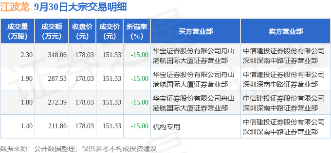 证券之星消息,9月30日江波龙发生大宗交易,交易数据如下: