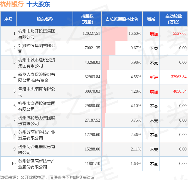 根据杭州银行2025年中报公布的十大股东详情如下: