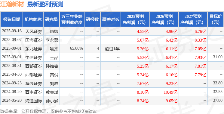 江瀚新材2025年中报显示,公司主营收入9.45亿元,同比下降19.53%;归母净利润2.1亿元,同比下降32.6%;扣非净利润1.99亿元,同比下降32.35%;其中2025年第二季度,公司单季度主营收入4.53亿元,同比下降22.85%;单季度归母净利润1.14亿元,同比下降27.91%;单季度扣非净利润1.08亿元,同比下降27.59%;负债率7.88%,投资收益540.49万元,财务费用-4656.23万元,毛利率27.91%。