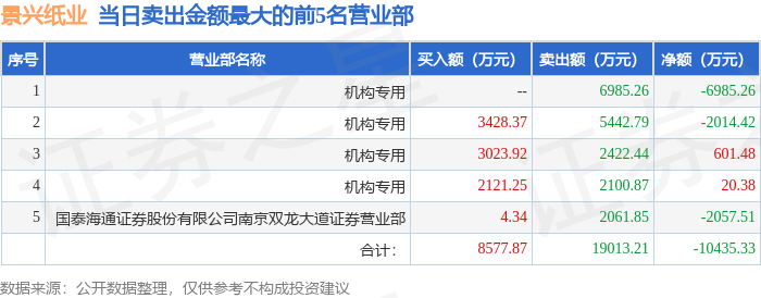 从龙虎榜公布的当日买卖数据来看,机构合计净卖出5559.66万元。南京双龙大道等知名游资榜上有名。(知名游资南京双龙大道一般指国泰海通证券股份有限公司南京双龙大道证券营业部席位,根据市场资料整理,仅供参考)