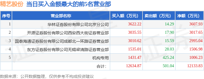 证券之星消息,沪深交易所2025年9月30日公布的交易公开信息显示,精艺股份(002295)因日换手率达到20%的前5只证券登上龙虎榜。此次是近5个交易日内第3次上榜。