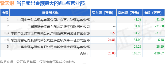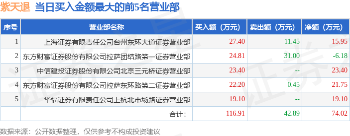 证券之星消息,沪深交易所2025年9月30日公布的交易公开信息显示,紫天退(300280)因退市整理期登上龙虎榜。此次是近5个交易日内第5次上榜。
