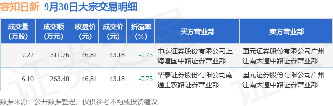 证券之星消息,9月30日容知日新发生大宗交易,交易数据如下: