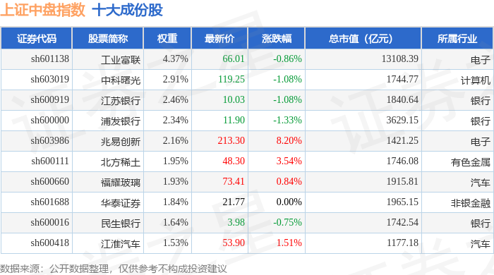 上证中盘(000044)指数十大成份股详情如下: