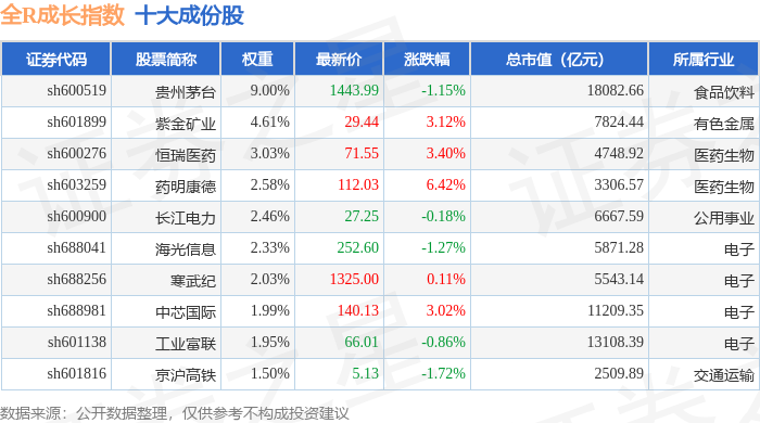 全R成长(000059)指数十大成份股详情如下:
