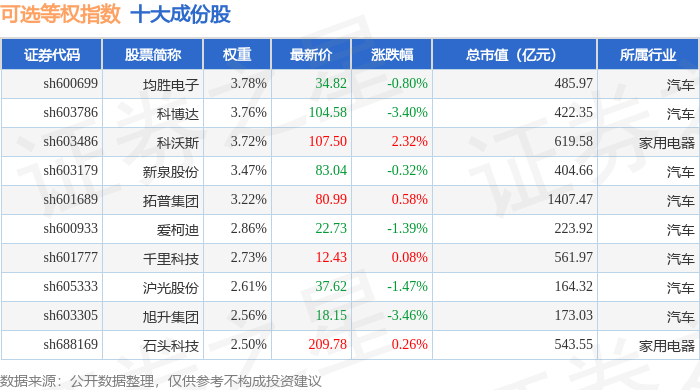 证券之星消息,9月30日,可选等权(000073)指数报收于3664.96点,涨0.22%,成交382.23亿元,换手率1.14%。当日该指数成份股中,上涨的有28家,赛力斯以7.78%的涨幅领涨,下跌的有21家,旭升集团以3.46%的跌幅领跌。