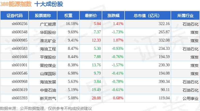 380能源(000104)指数十大成份股详情如下: