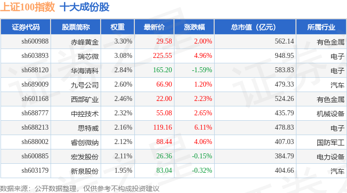 证券之星消息,9月30日,上证100(000132)指数报收于6217.95点,涨1.21%,成交518.82亿元,换手率1.65%。当日该指数成份股中,上涨的有56家,华秦科技以8.89%的涨幅领涨,下跌的有43家,科博达以3.4%的跌幅领跌。