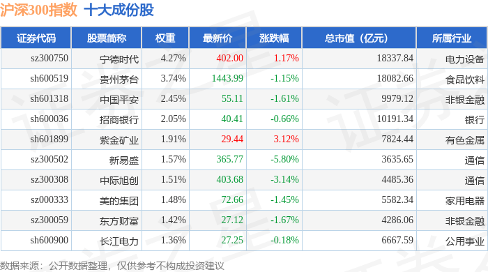 沪深300(000300)指数十大成份股详情如下: