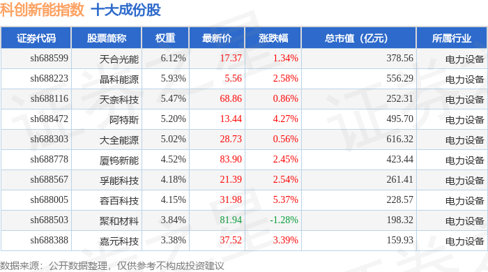 证券之星消息,9月30日,科创新能(000692)指数报收于1245.25点,涨2.8%,成交253.74亿元,换手率3.15%。当日该指数成份股中,上涨的有36家,派能科技以19.99%的涨幅领涨,下跌的有7家,芳源股份以4.18%的跌幅领跌。