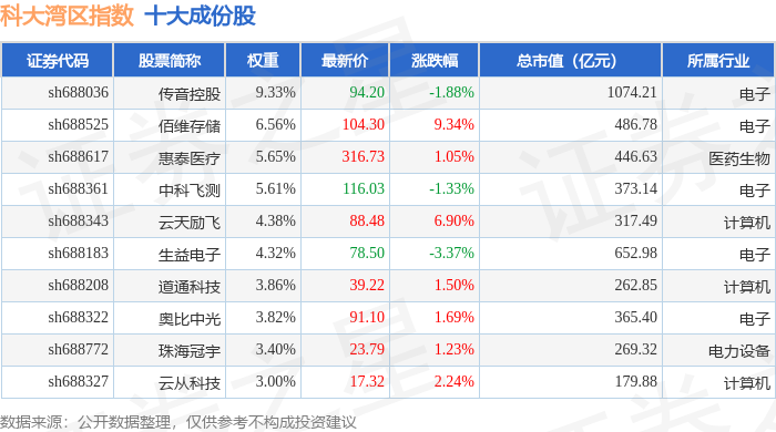 证券之星消息,9月30日,科大湾区(000697)指数报收于1396.81点,涨1.34%,成交258.41亿元,换手率2.85%。当日该指数成份股中,上涨的有42家,佰维存储以9.34%的涨幅领涨,下跌的有14家,生益电子以3.37%的跌幅领跌。