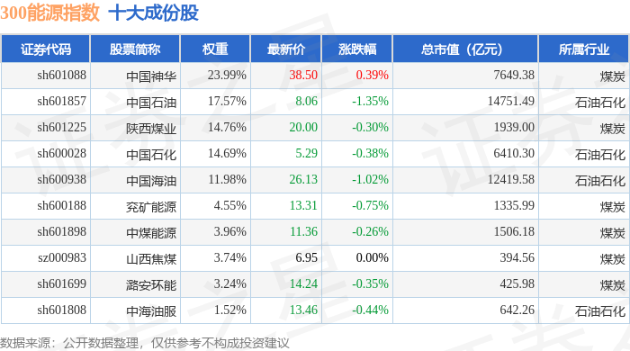 证券之星消息,9月30日,300能源(000908)指数报收于2122.01点,跌0.43%,成交57.98亿元,换手率0.15%。当日该指数成份股中,上涨的有1家,中国神华以0.39%的涨幅领涨,下跌的有8家,中国石油以1.35%的跌幅领跌。