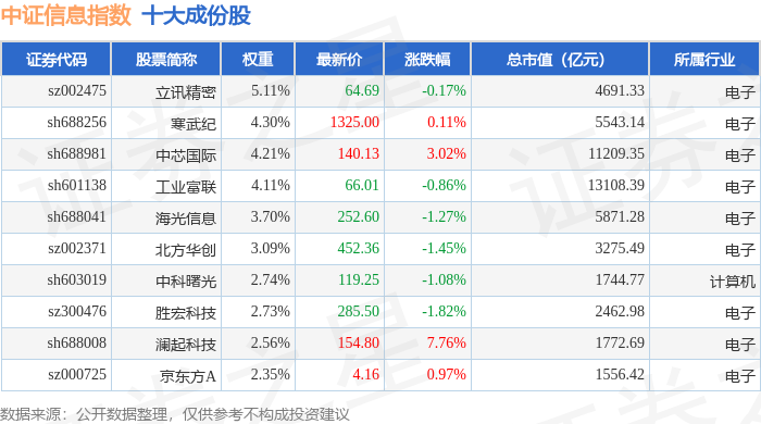 证券之星消息,9月30日,中证信息(000935)指数报收于6876.05点,涨1.06%,成交3612.31亿元,换手率3.02%。当日该指数成份股中,上涨的有82家,江波龙以20.0%的涨幅领涨,下跌的有44家,华工科技以6.73%的跌幅领跌。