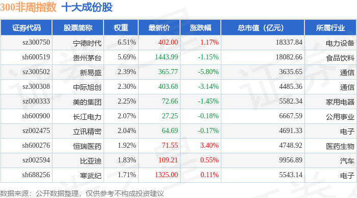 300非周(000969)指数十大成份股详情如下: