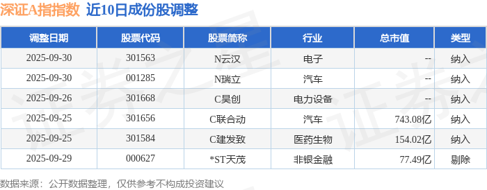 近10日内深证A指(399107)指数成份股做了调整,新纳入了5只股票,剔除了1只股票。