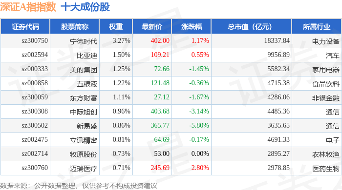 深证A指(399107)指数十大成份股详情如下: