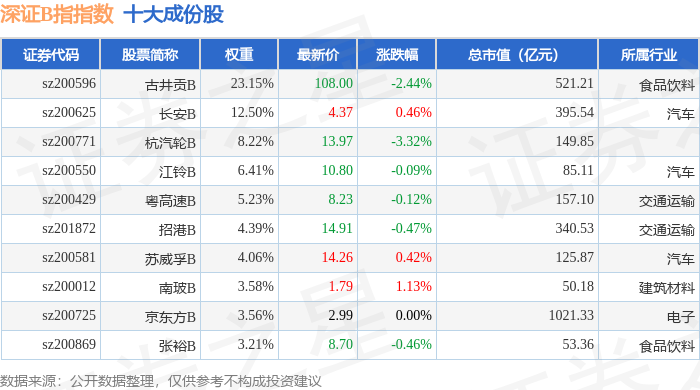 深证B指(399108)指数十大成份股详情如下: