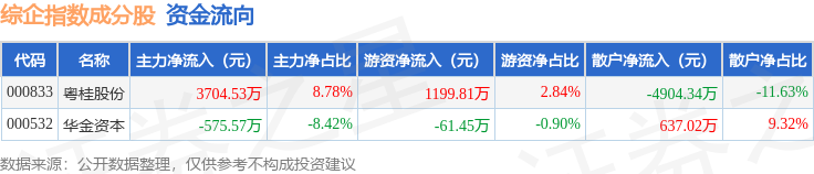 资金流向方面,综企指数(399249)成份股当日主力资金净流入合计3128.96万元,游资资金净流入合计1138.35万元,散户资金净流出合计4267.32万元。成份股资金流向详情见下表: