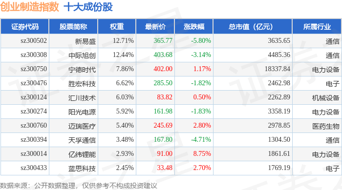 证券之星消息,9月30日,创业制造(399261)指数报收于5988.7点,跌0.25%,成交1744.94亿元,换手率3.64%。当日该指数成份股中,上涨的有34家,江波龙以20.0%的涨幅领涨,下跌的有16家,新易盛以5.8%的跌幅领跌。