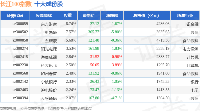 证券之星消息,9月30日,长江100(399278)指数报收于2127.39点,跌0.2%,成交2163.59亿元,换手率2.14%。当日该指数成份股中,上涨的有55家,湖南裕能以12.01%的涨幅领涨,下跌的有43家,华工科技以6.73%的跌幅领跌。
