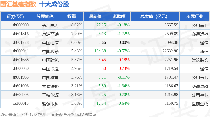 国证基建(399359)指数十大成份股详情如下: