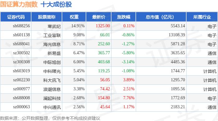 证券之星消息,9月30日,国证算力(399363)指数报收于9344.0点,涨0.03%,成交2016.6亿元,换手率3.02%。当日该指数成份股中,上涨的有31家,江波龙以20.0%的涨幅领涨,下跌的有19家,华工科技以6.73%的跌幅领跌。