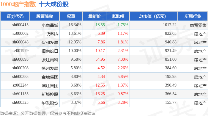 证券之星消息,9月30日,1000地产(399367)指数报收于3114.31点,涨2.32%,成交192.67亿元,换手率1.68%。当日该指数成份股中,上涨的有14家,万业企业以10.0%的涨幅领涨,下跌的有3家,小商品城以1.75%的跌幅领跌。