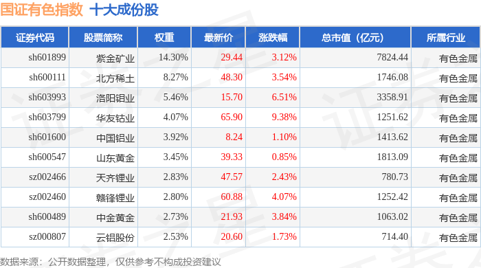 证券之星消息,9月30日,国证有色(399395)指数报收于8363.66点,涨3.29%,成交1120.08亿元,换手率3.29%。当日该指数成份股中,上涨的有43家,铂科新材以12.44%的涨幅领涨,下跌的有6家,东阳光以2.18%的跌幅领跌。