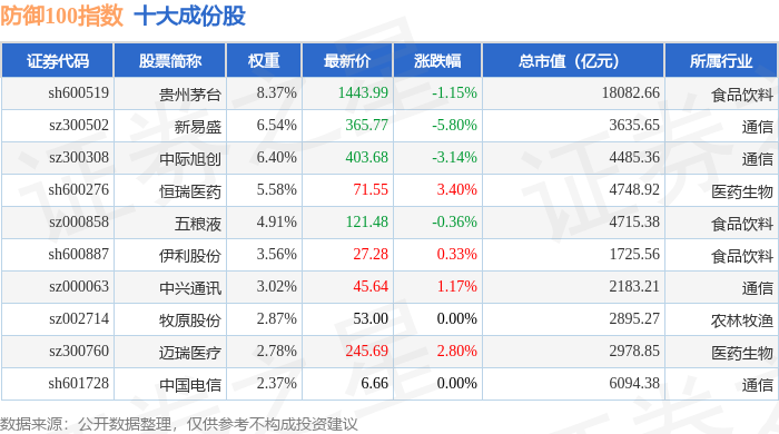 证券之星消息,9月30日,防御100(399403)指数报收于8929.72点,跌0.54%,成交1170.39亿元,换手率0.95%。当日该指数成份股中,上涨的有41家,东鹏饮料以4.56%的涨幅领涨,下跌的有56家,新易盛以5.8%的跌幅领跌。