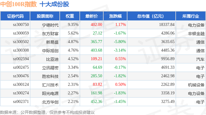 中创100R(399611)指数十大成份股详情如下: