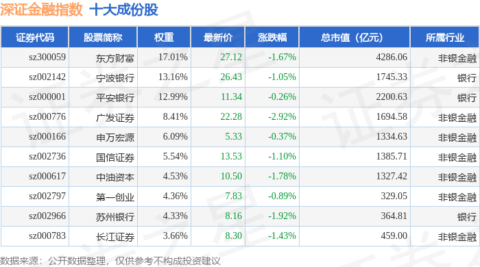 资金流向方面,深证金融(399619)指数成份股当日主力资金净流出合计34.85亿元,游资资金净流入合计11.77亿元,散户资金净流入合计23.08亿元。成份股资金流向详情见下表: