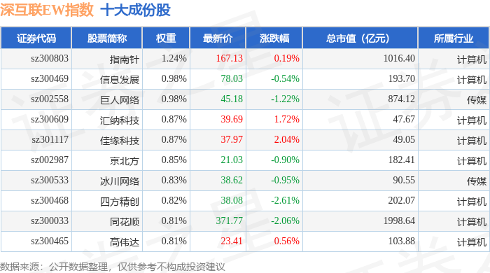 资金流向方面,深互联EW(399677)指数成份股当日主力资金净流出合计14.28亿元,游资资金净流入合计3.45亿元,散户资金净流入合计10.82亿元。成份股资金流向详情见下表: