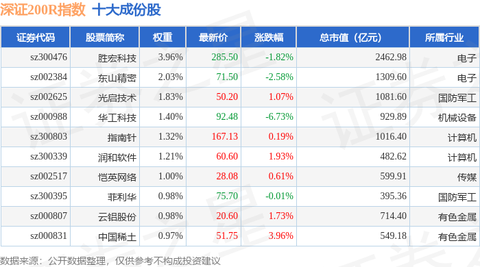证券之星消息,9月30日,深证200R(399679)指数报收于6262.29点,涨0.7%,成交2467.21亿元,换手率2.32%。当日该指数成份股中,上涨的有108家,江波龙以20.0%的涨幅领涨,下跌的有89家,华工科技以6.73%的跌幅领跌。