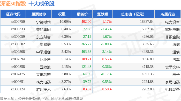 深证50(399850)指数十大成份股详情如下: