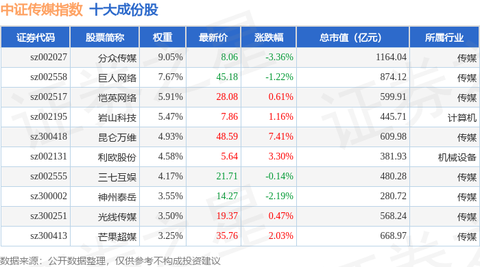 资金流向方面,中证传媒(399971)指数成份股当日主力资金净流出合计4.72亿元,游资资金净流入合计1.32亿元,散户资金净流入合计3.4亿元。成份股资金流向详情见下表: