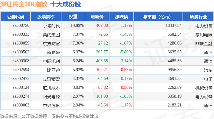 资金流向方面,深证民企50R(470057)指数成份股当日主力资金净流出合计88.99亿元,游资资金净流入合计38.2亿元,散户资金净流入合计50.79亿元。成份股资金流向详情见下表: