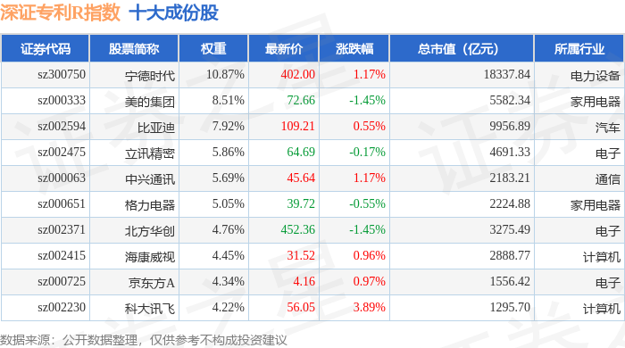 证券之星消息,9月30日,深证专利R(470067)指数报收于6248.71点,涨0.78%,成交1176.1亿元,换手率1.85%。当日该指数成份股中,上涨的有28家,新雷能以20.0%的涨幅领涨,下跌的有22家,科华数据以3.56%的跌幅领跌。