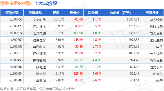 证券之星消息,9月30日,创业专利R(470068)指数报收于7565.84点,涨0.81%,成交910.28亿元,换手率3.41%。当日该指数成份股中,上涨的有30家,亿纬锂能以8.75%的涨幅领涨,下跌的有20家,江丰电子以4.86%的跌幅领跌。