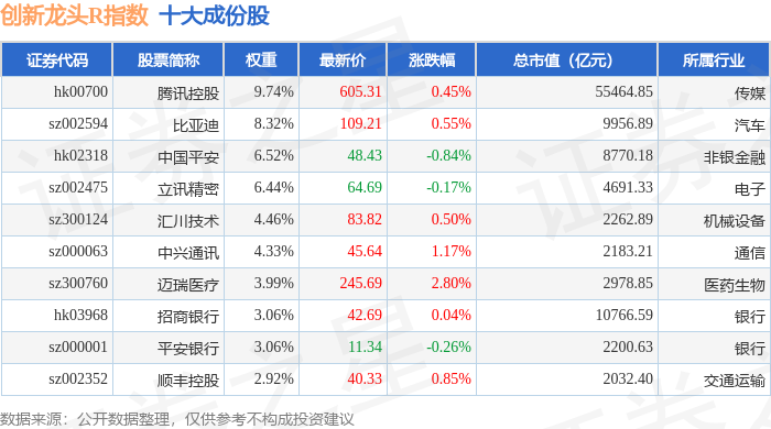 创新龙头R(480036)指数十大成份股详情如下: